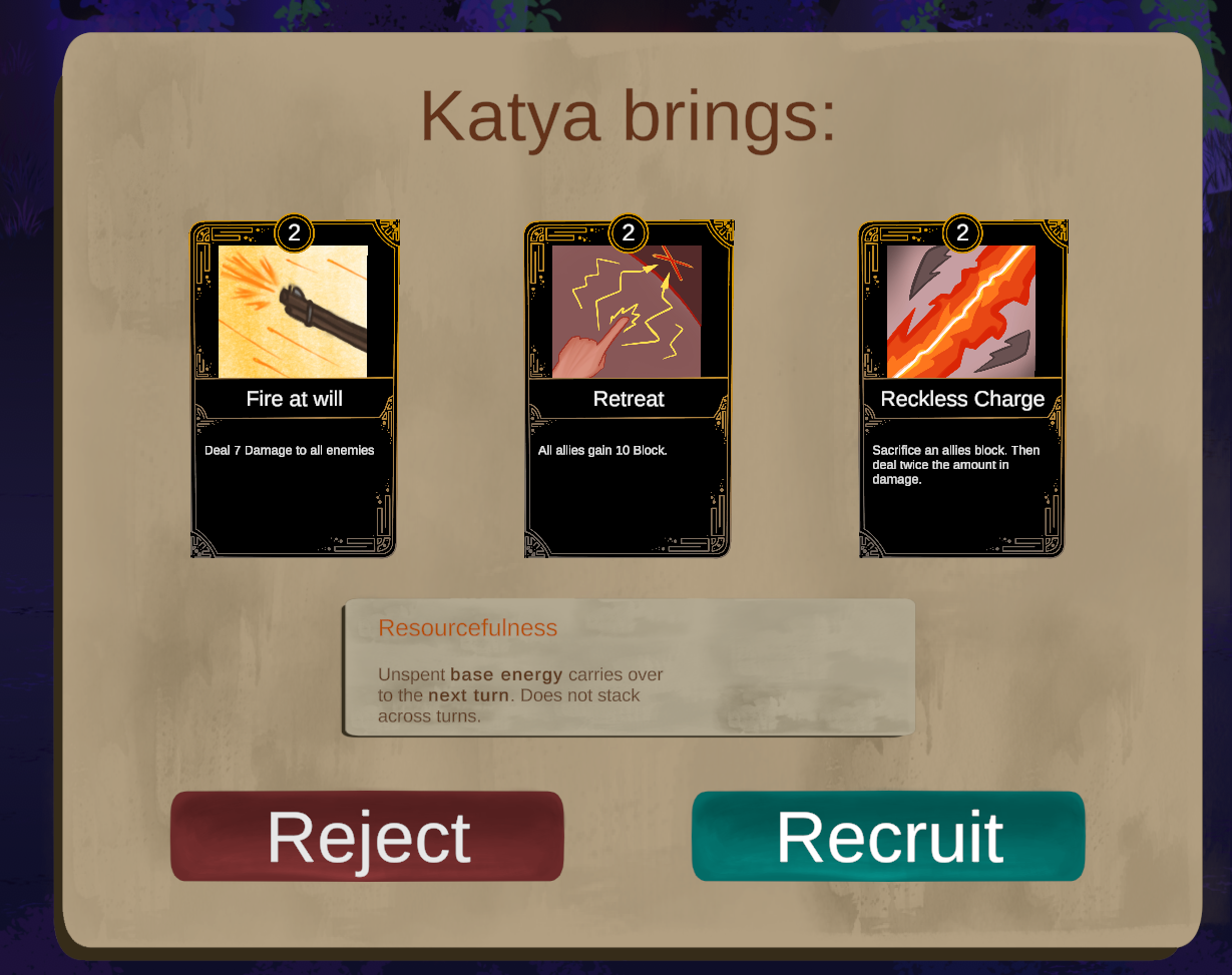 Had a lot of fun playing the demo!! Love the character and enemy designs as well as the card sprites!! Very cool.